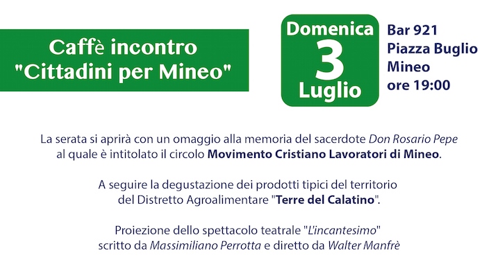 Leggi tutto..Domenica 3 luglio, un caffè incontro per i "Cittadini di Mineo"